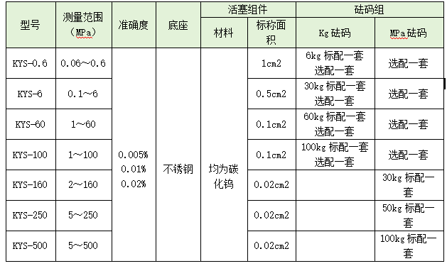型號:YUNYI7060 量程:0.1-6MPa 精度:0.005% 最小砝碼(含底盤)0.1MPa