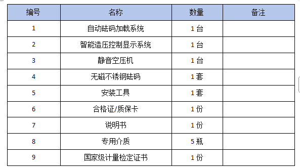 六、全自動活塞式壓力計配置清單